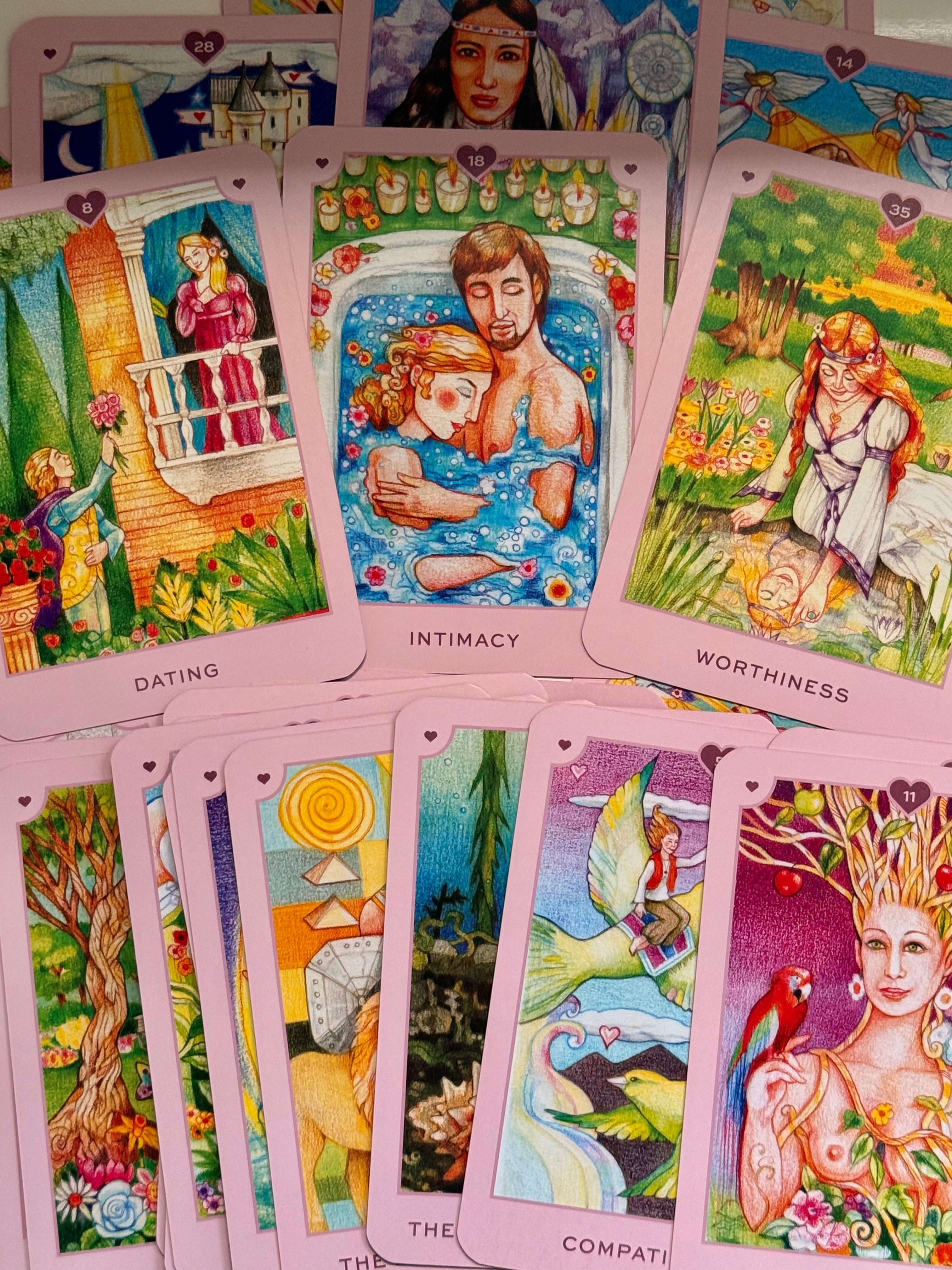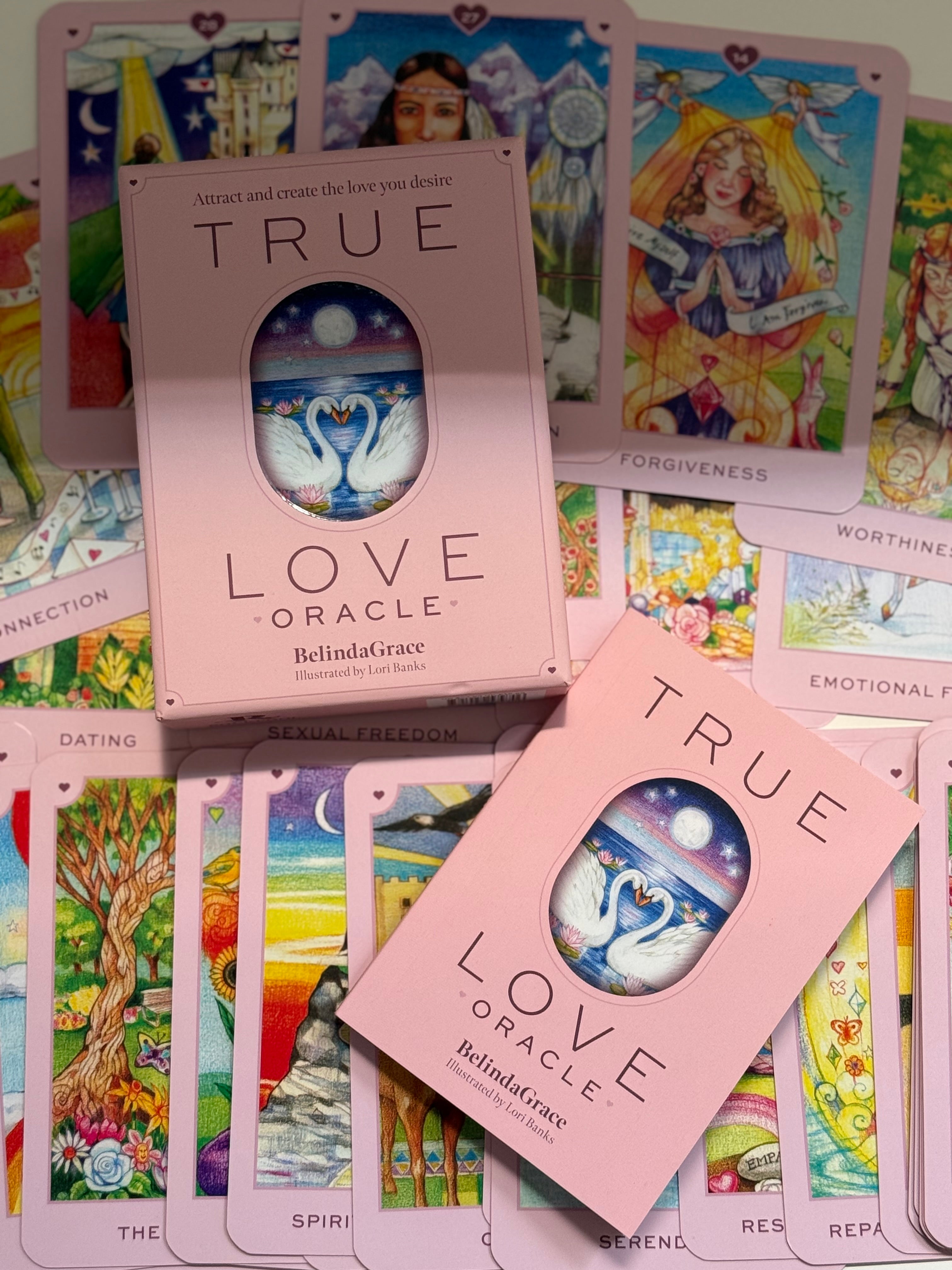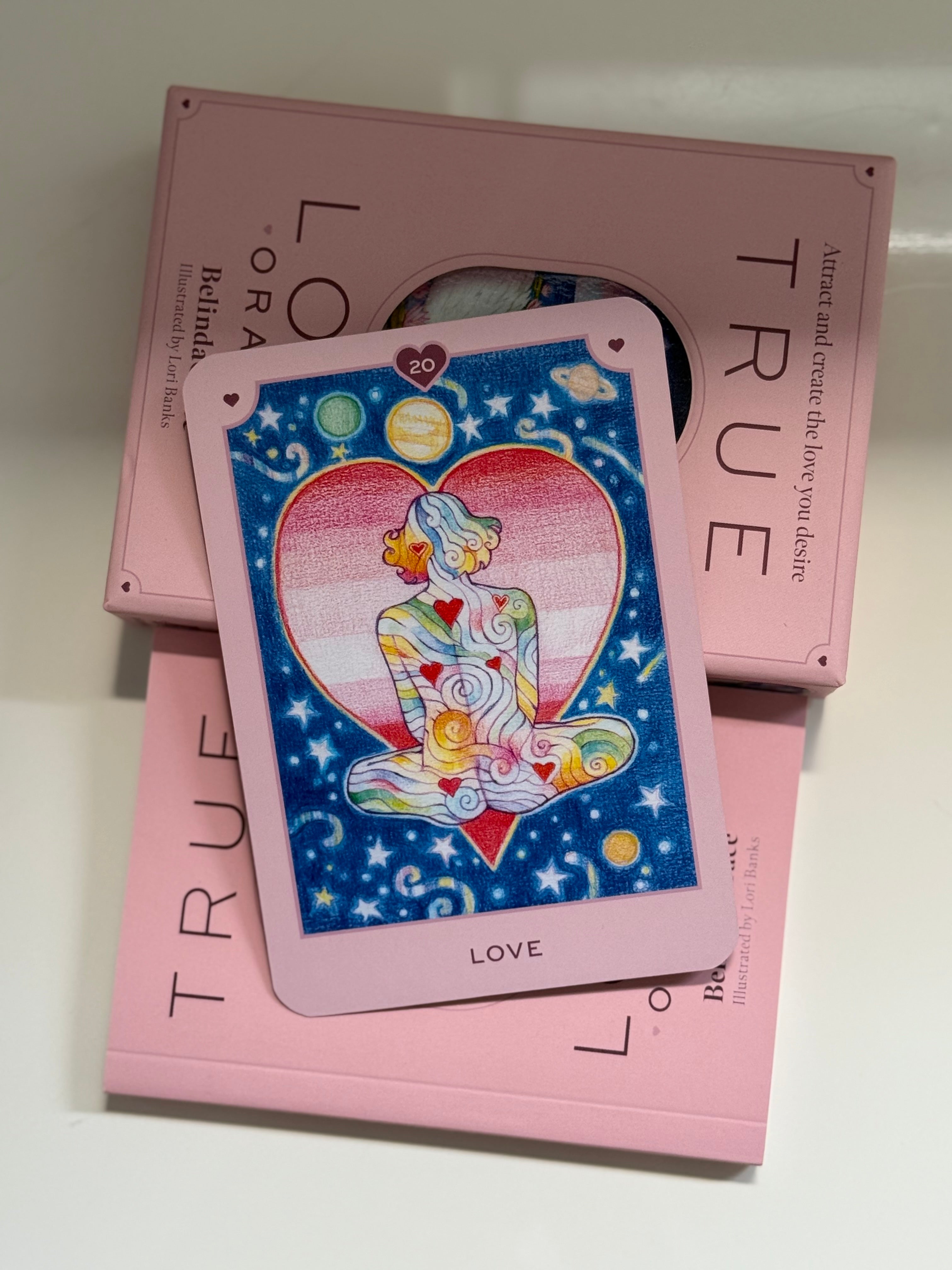 True Love Oracle cards will guide you to new levels of understanding, confidence and trust - they will shine a light so you can attract and create the love you desire 💕✨Learn about what you truly need in relationships, what you long for and how to attract it into your life as you become more emotionally and spiritually fulfilled.Imbued with healing energy and colour, the cards have been channelled through the highest frequency by fine artist Lori Banks.